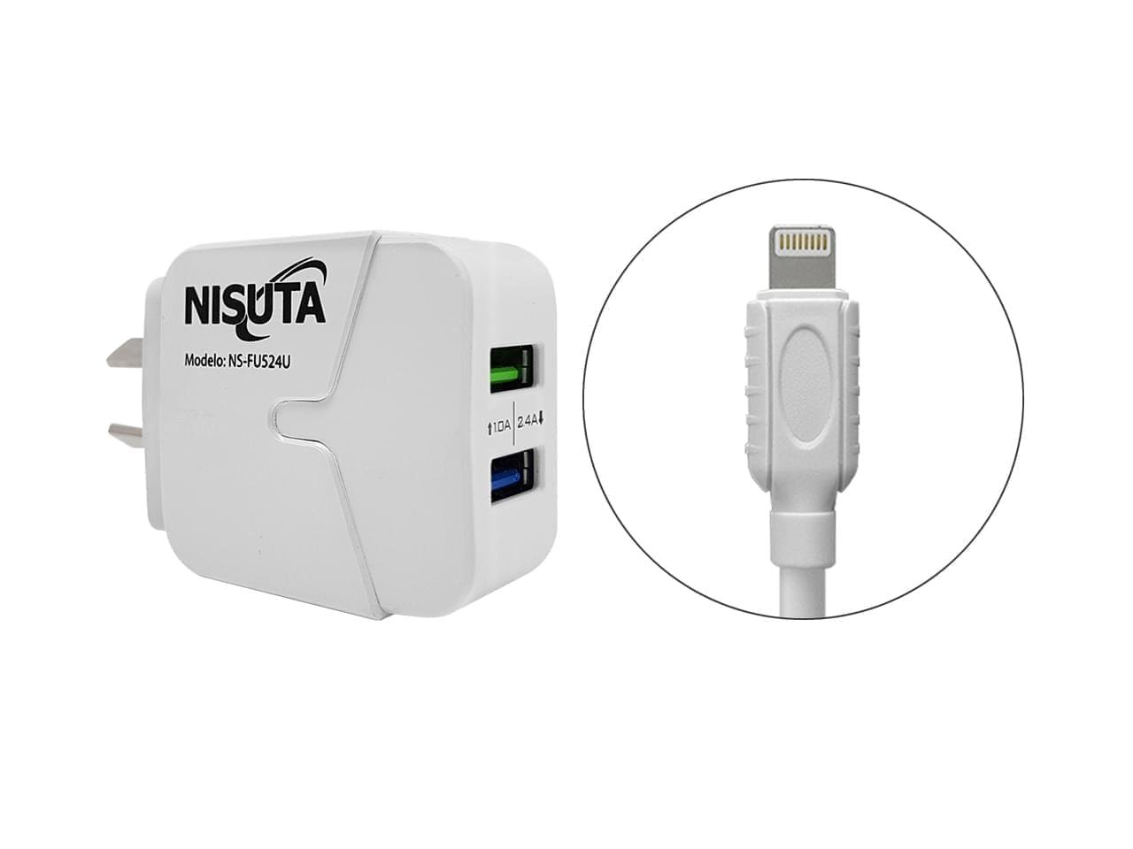 CA CELU NISUTA NSFU524UI 2USB+CABLE USB IPHONE 1M cantidad